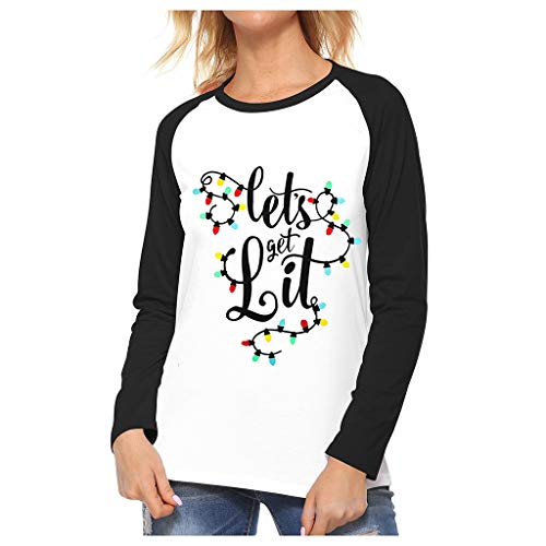 Aotifu Women Merry Christmas Leaf Baseball T-Shirt Sale Long Sleeve Letters Print O-Neck Casual Tees Casual Women Top(002Black,XXL) r3ipand4uvj