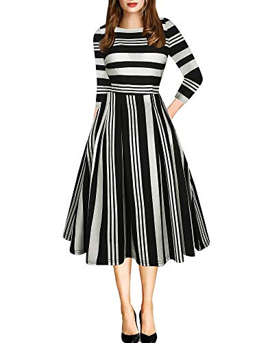 oxiuly Women's Vintage Chic Stripe Pockets 3/4 Sleeve Casual Party Church Tea Swing Dress OX165 (M, Black Stripe 7) r3ipand4uvj